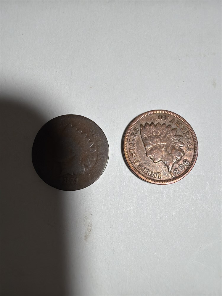 Two very rare great condition Indian head pennies, 1874 and 1898