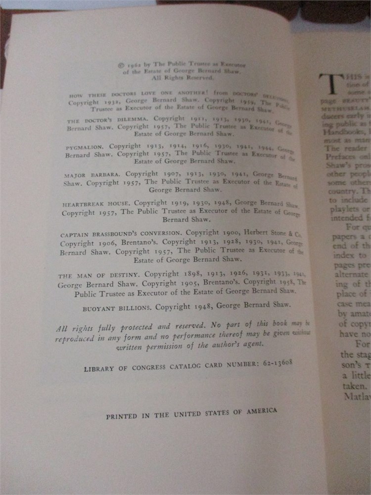 6 Volume, Complete Set, Bernard Shaw, Compete Plays, 1962 1st Edition