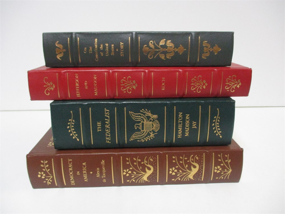 4 Volumes, Beautifully Leather Bound w/ Gold Leaf edges and embossed, including, Democracy in America, The Federalist, Jefferson and Madison and The Constitution of the United States Story. Awesome Condition !