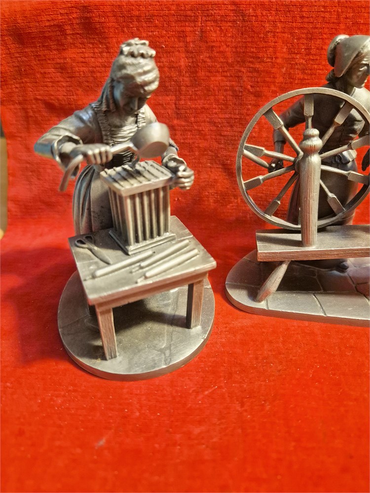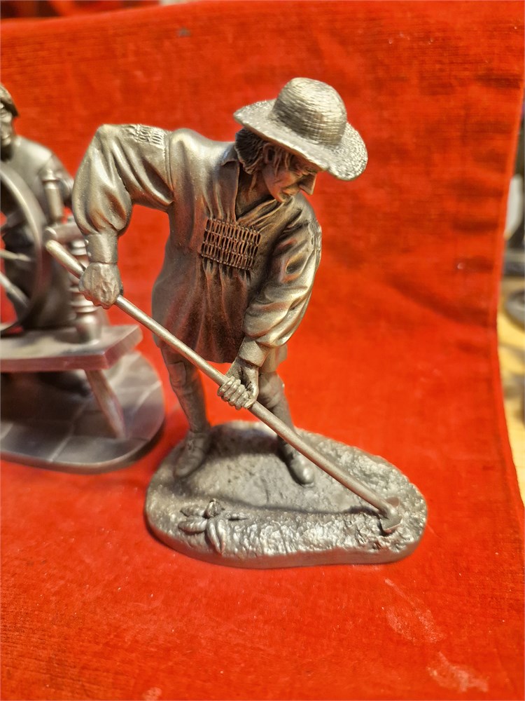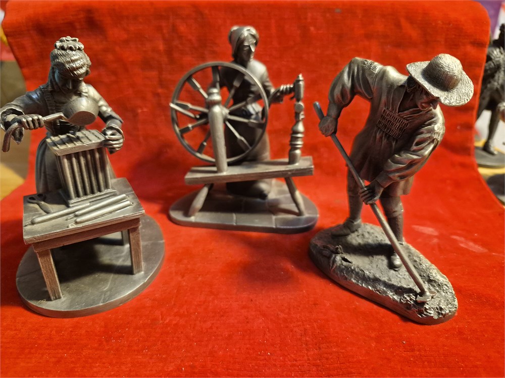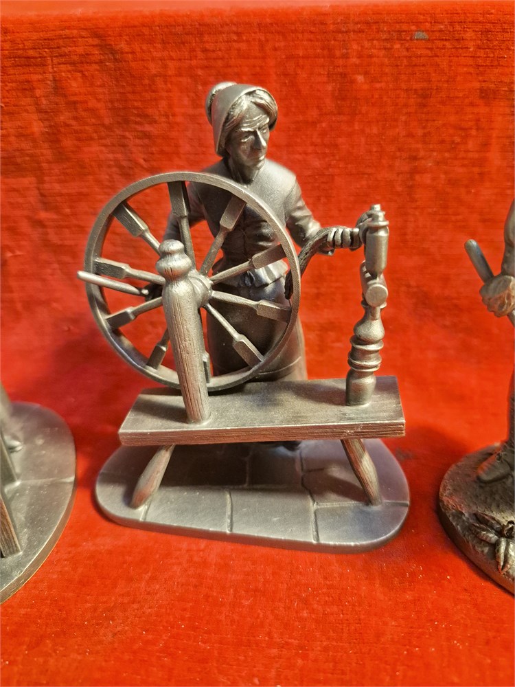 Nice lot of three detailed pewter figures.These all feature, early Americana figures are titled the planter, the spinner and the candle maker.