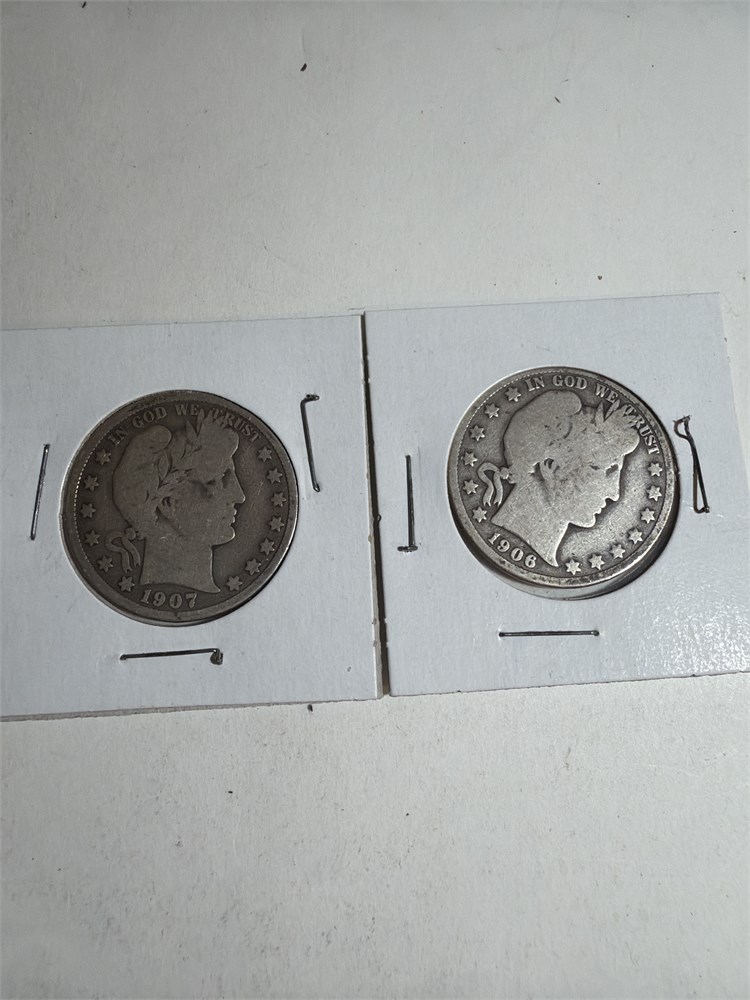 1906-1907 Barber Half Dollar, 90% Silver very rare fine  together