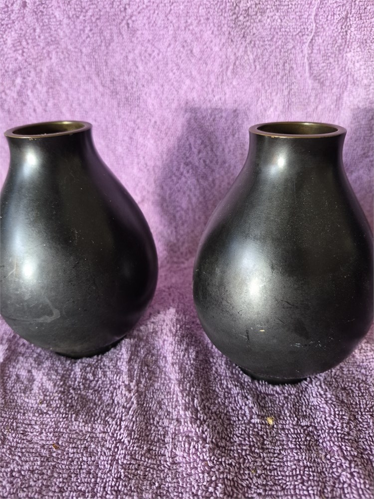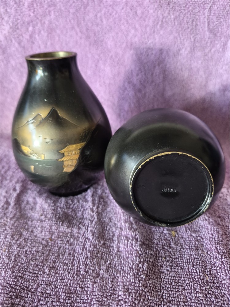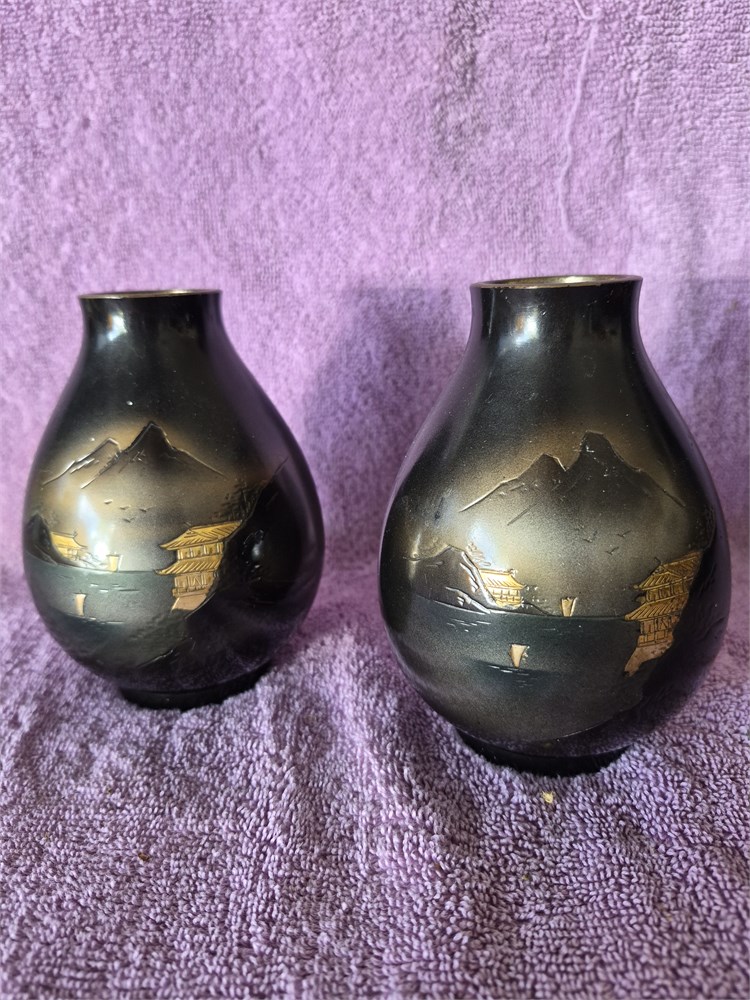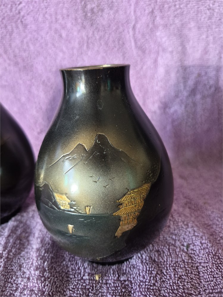 Vintage Japanese Etched Bronze Bud Vase. Each vase stands 5" tall.