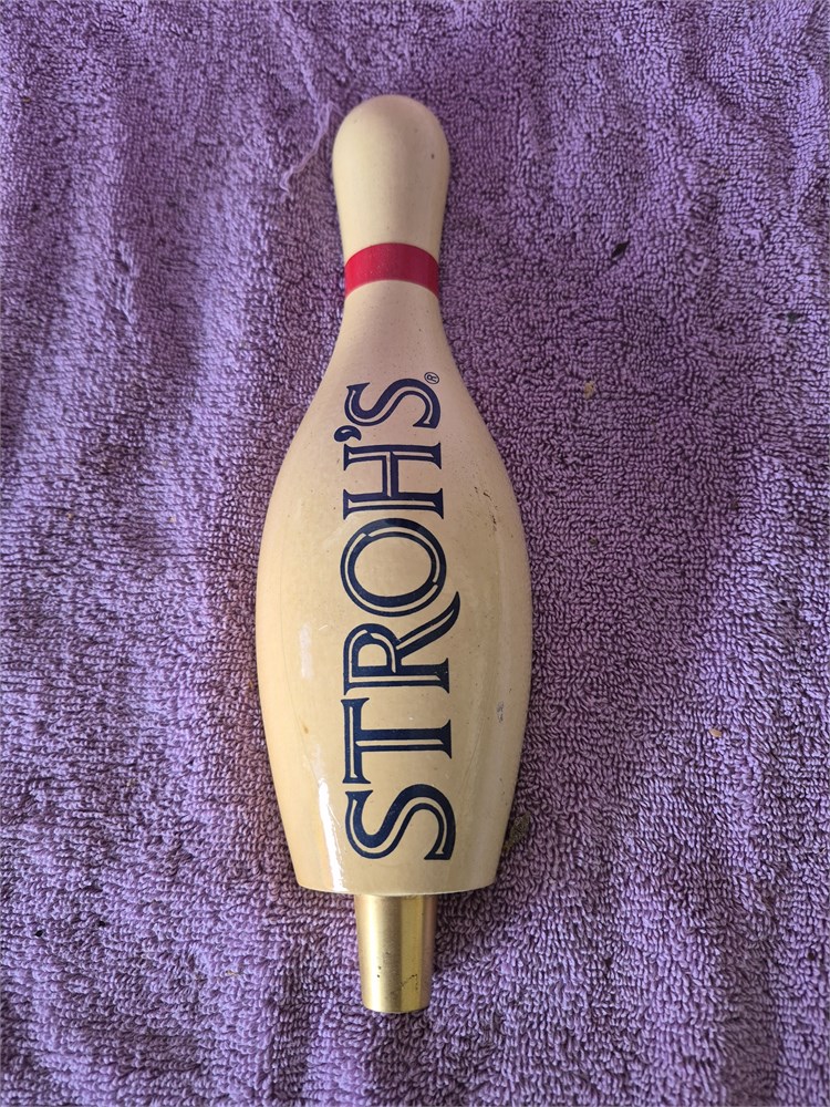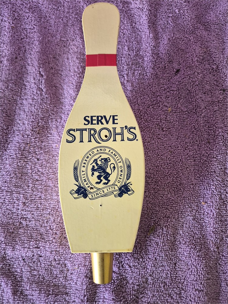 Strohs Beer Tap Handle Wood Laquered  Bowling Pin.
