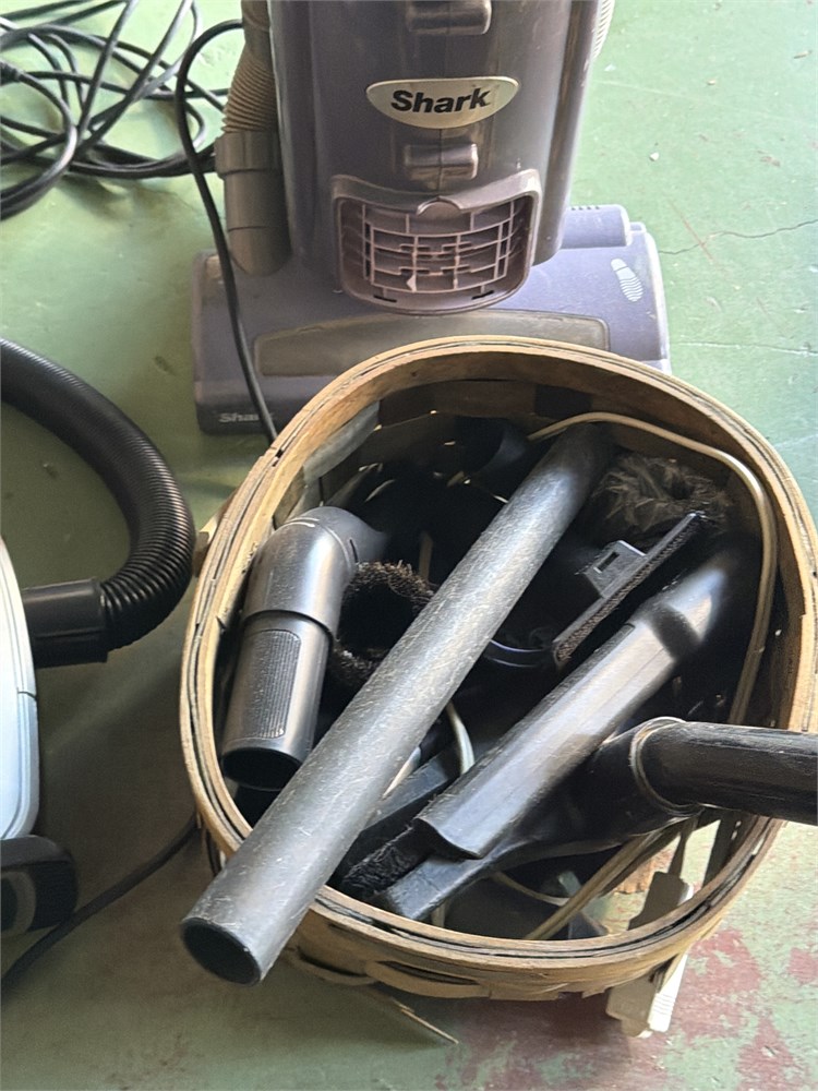Sharks full-size vacuum cleaner and a Hoover vacuum cleaner with attachment