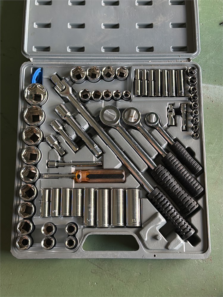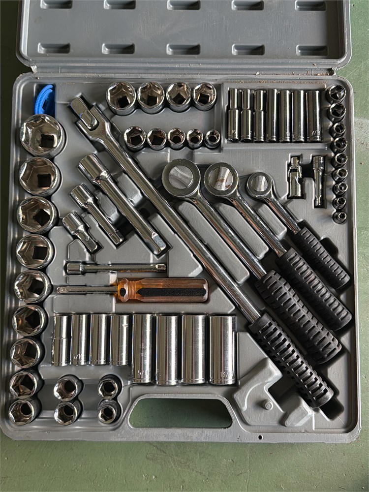 Vintage 60 plus Piece Ratchet And Socket Set 1/4" + 3/8" + 1/2" it appears it’s never been out of the box