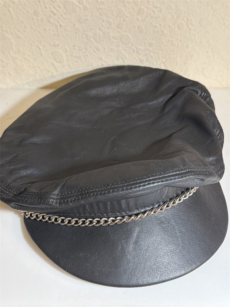 New Vintage Leather Biker Sailer Hat Cap With Chain Motorcycle (L)