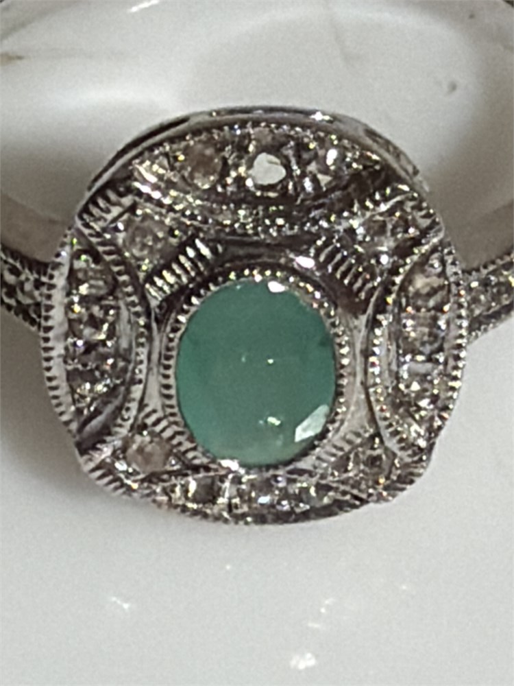 Solid 925 Silver Authentic Colombian Emerald Gemstone (L)