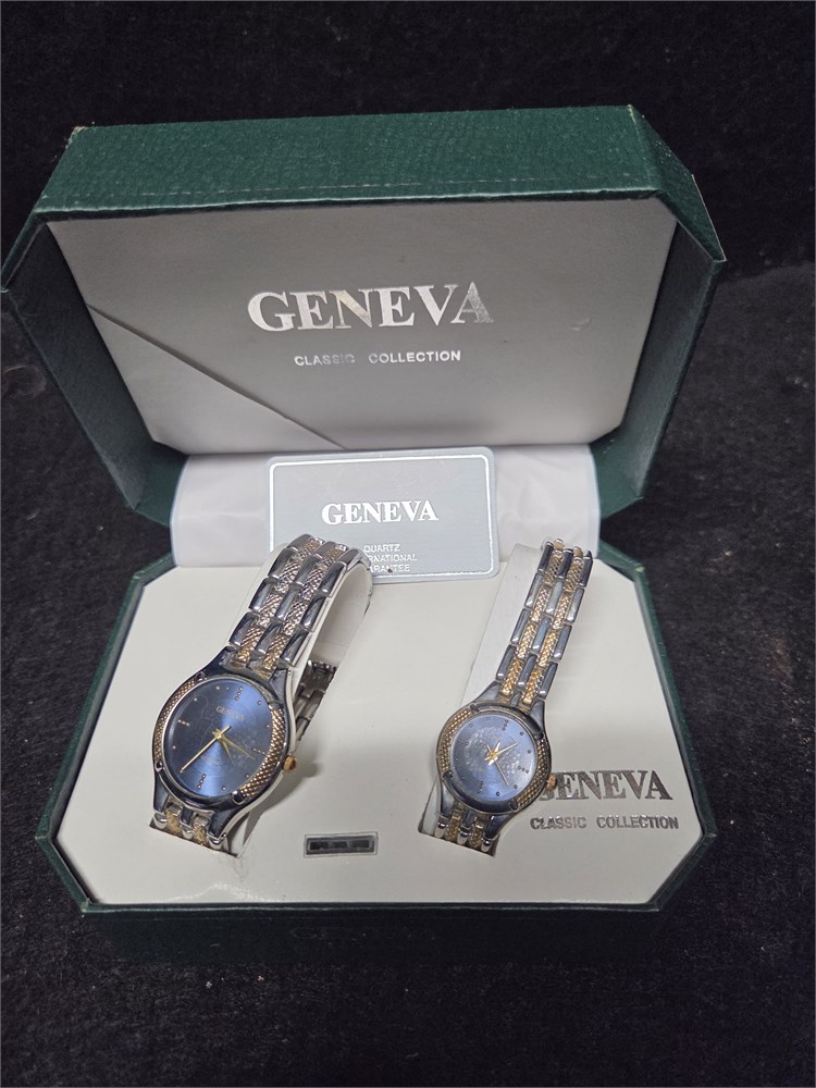 This is a new set of his and hers. Gold and silver tone matching watches. Comes in original packaging with warranty card