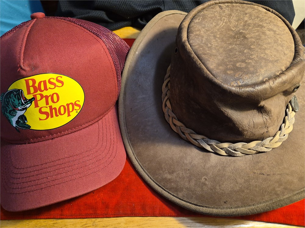 Barmah Hats Foldaway Bronco Leather Hat and Bass Pro Shops hat.