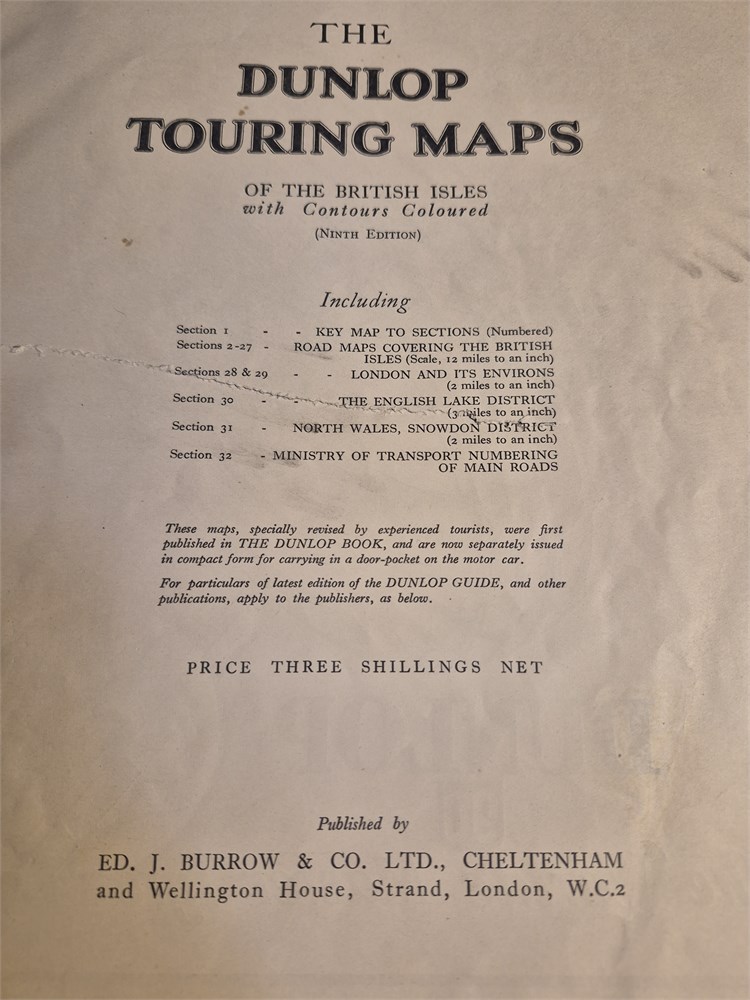 Antique Dunlop Tires British Isles Touring Map ED J Burrows London 1929 (LBA)