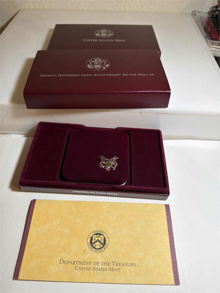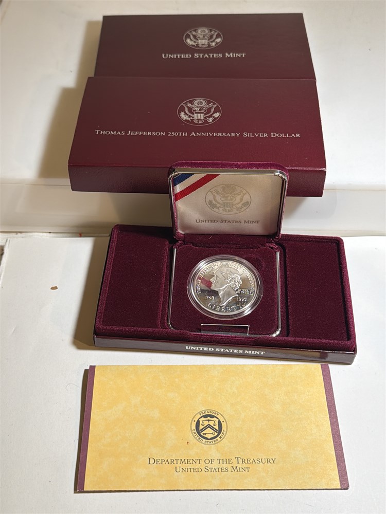 1993 S PROOF Thomas Jefferson 250th anniversary Silver all in the original backspace