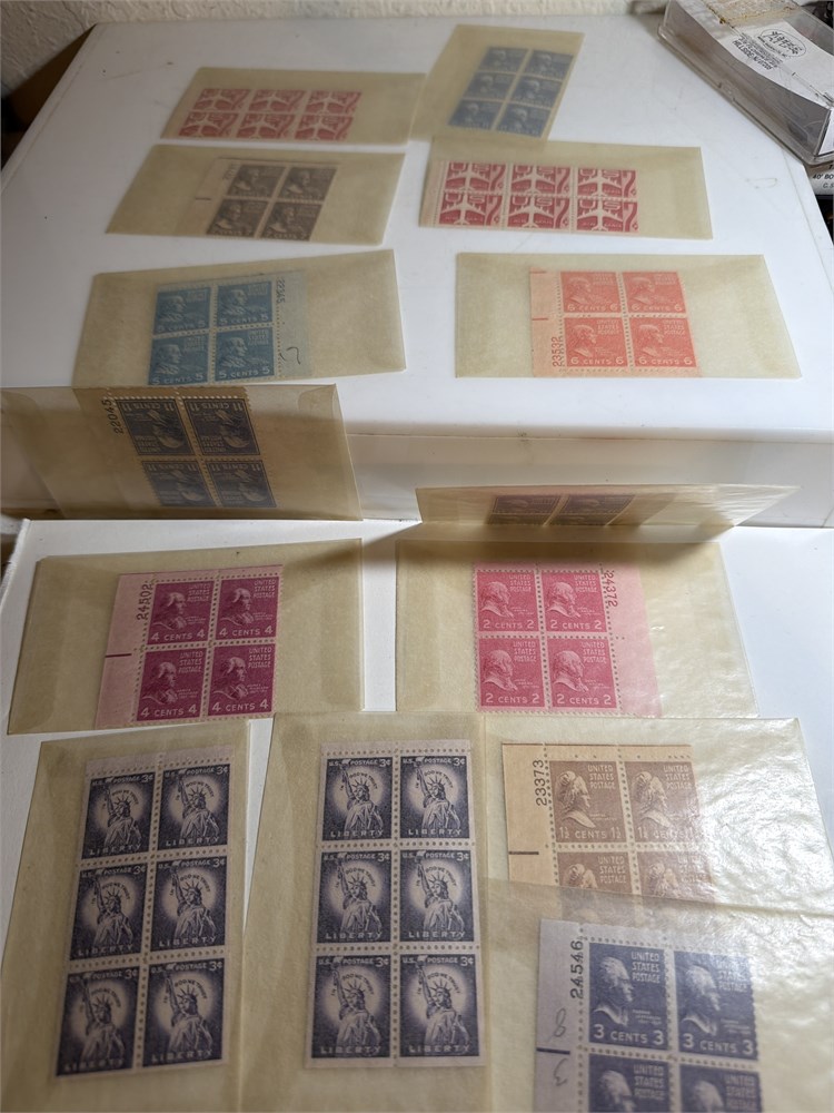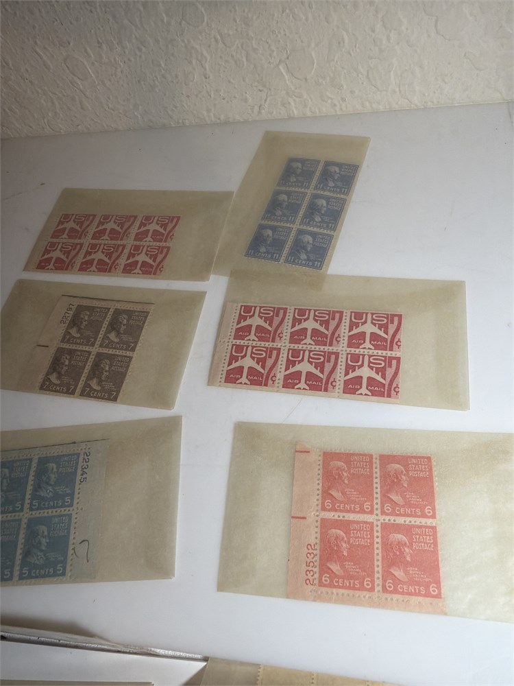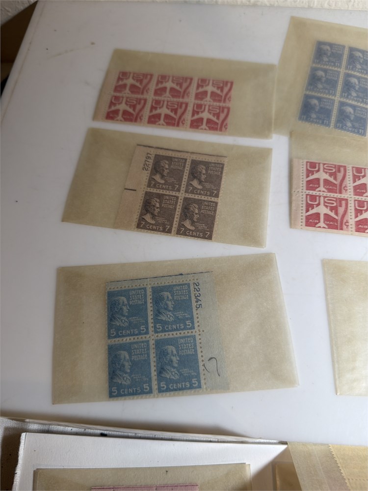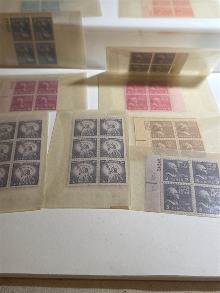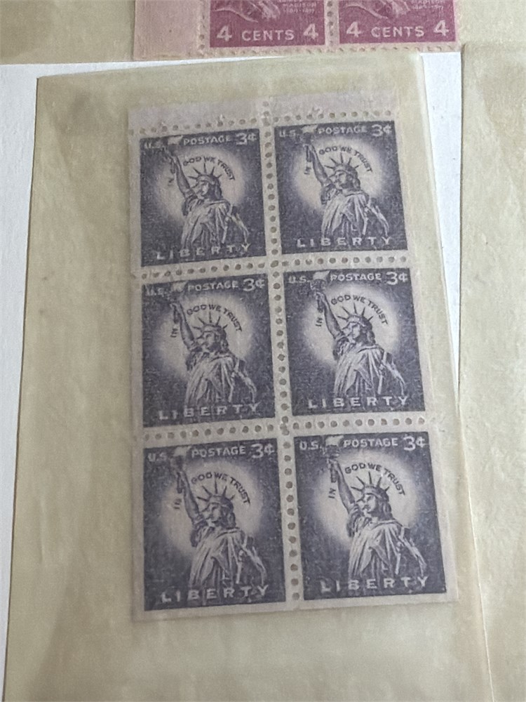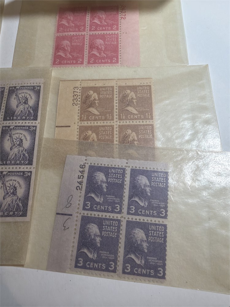 Thomas Jefferson 3 Cent Stamp Plate Block (4)  Violet Color Hinged 1954 US 3C STAMPS  LOT OF FOUR MNH BOOKLET PANES and much more